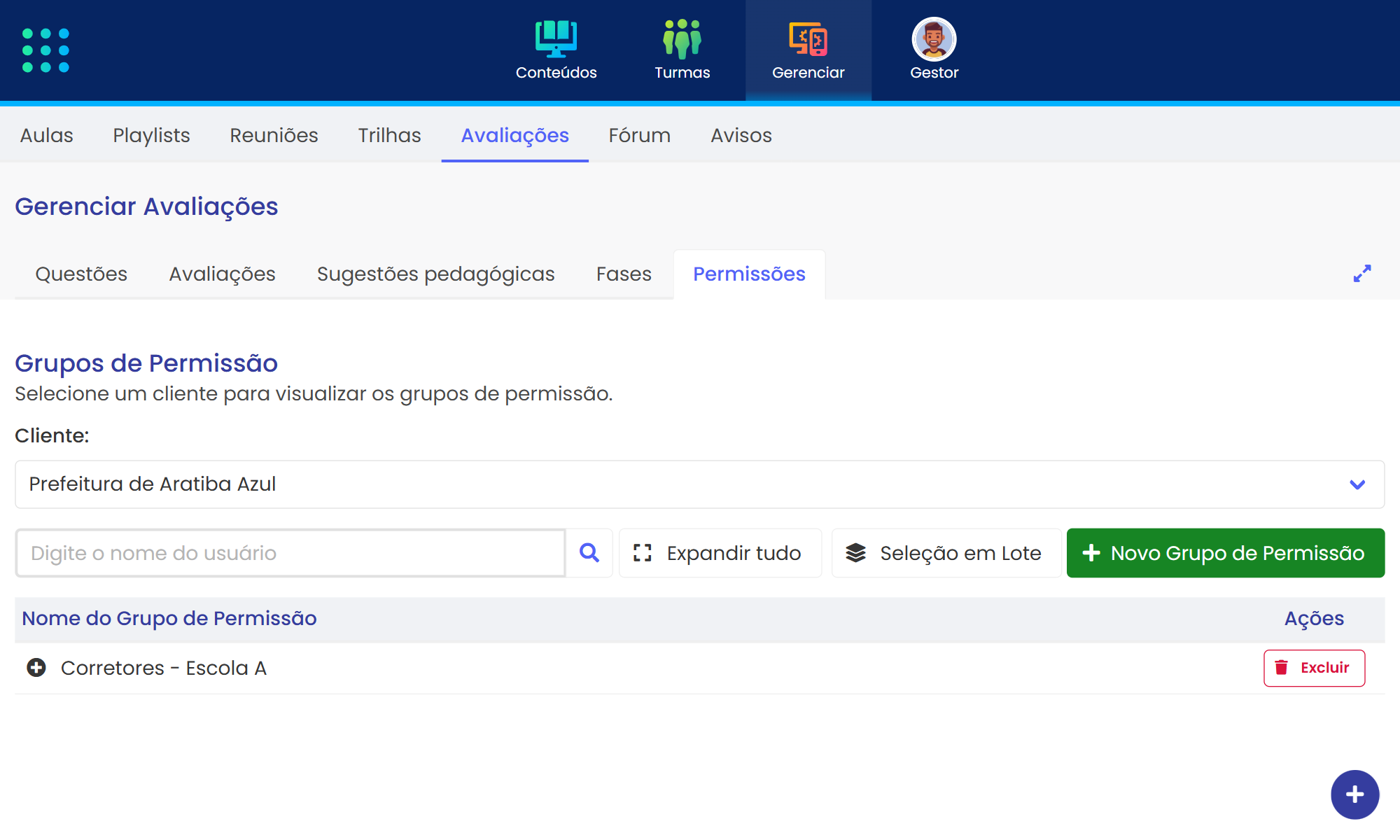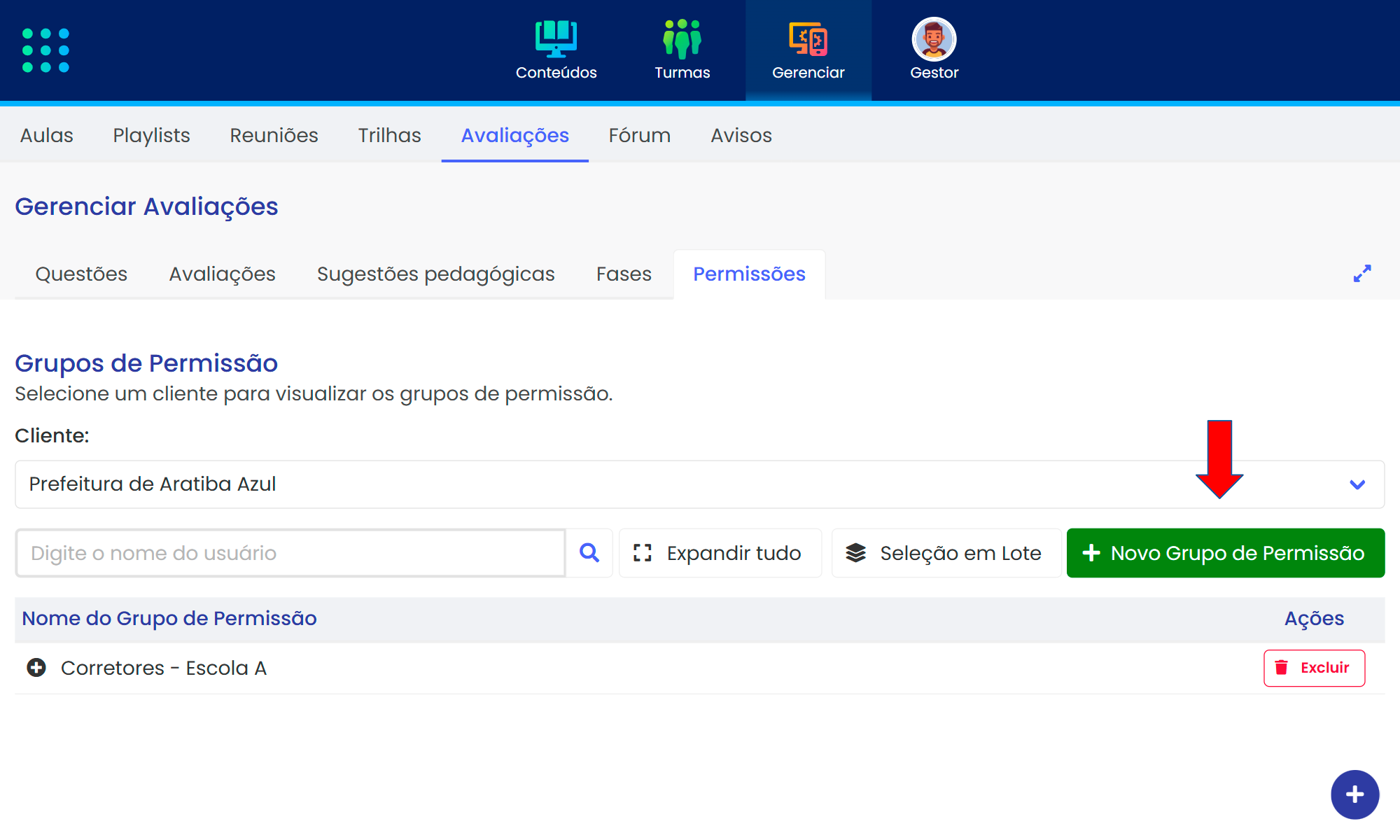 Para criar um novo grupo de permissão, clique no botão “Novo Grupo de Permissão”: