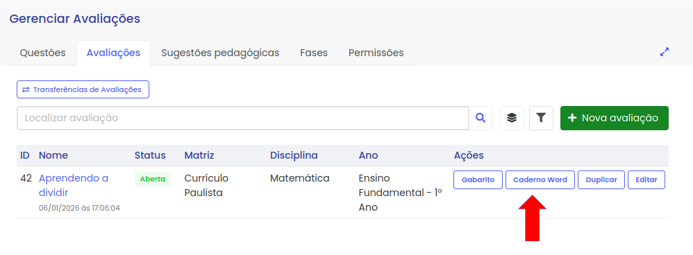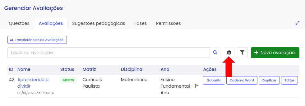 Obs.: Uma vez que uma questão for utilizada em uma avaliação, se seus dados forem atualizados, tais como adição de sugestões pedagógicas ou atualização do distrator, as mudanças serão refletidas no relatório da fase, mesmo ela sendo finalizada.