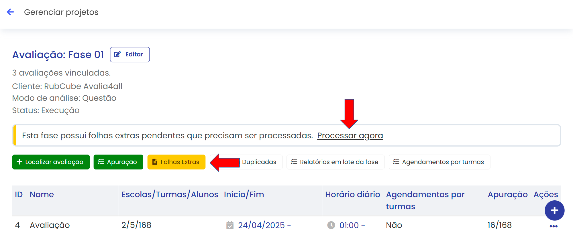 Criação de um cronograma de aplicação das provas (atividades), escolas e turmas que irão receber as provas, com data de início e encerramento. Recurso denominado fases.