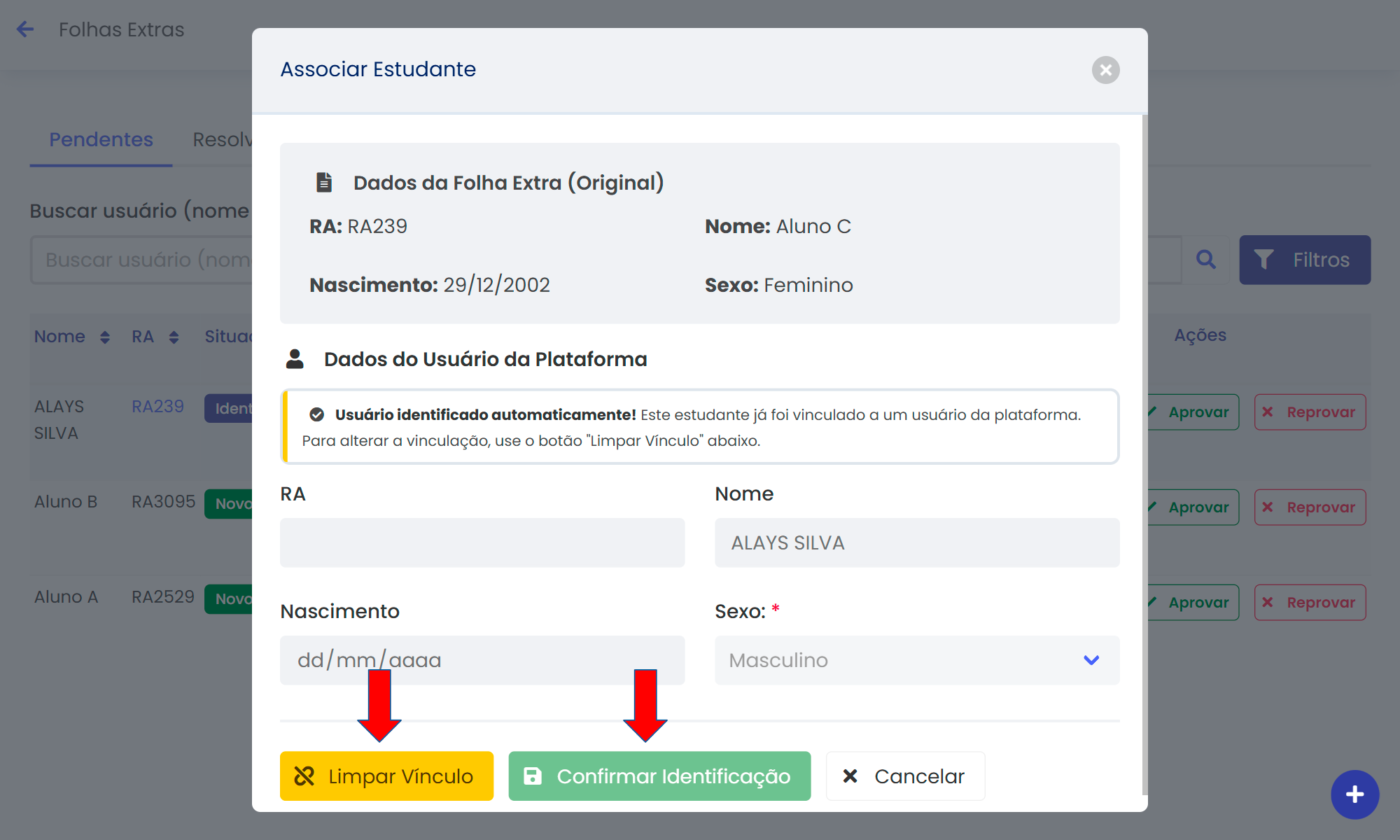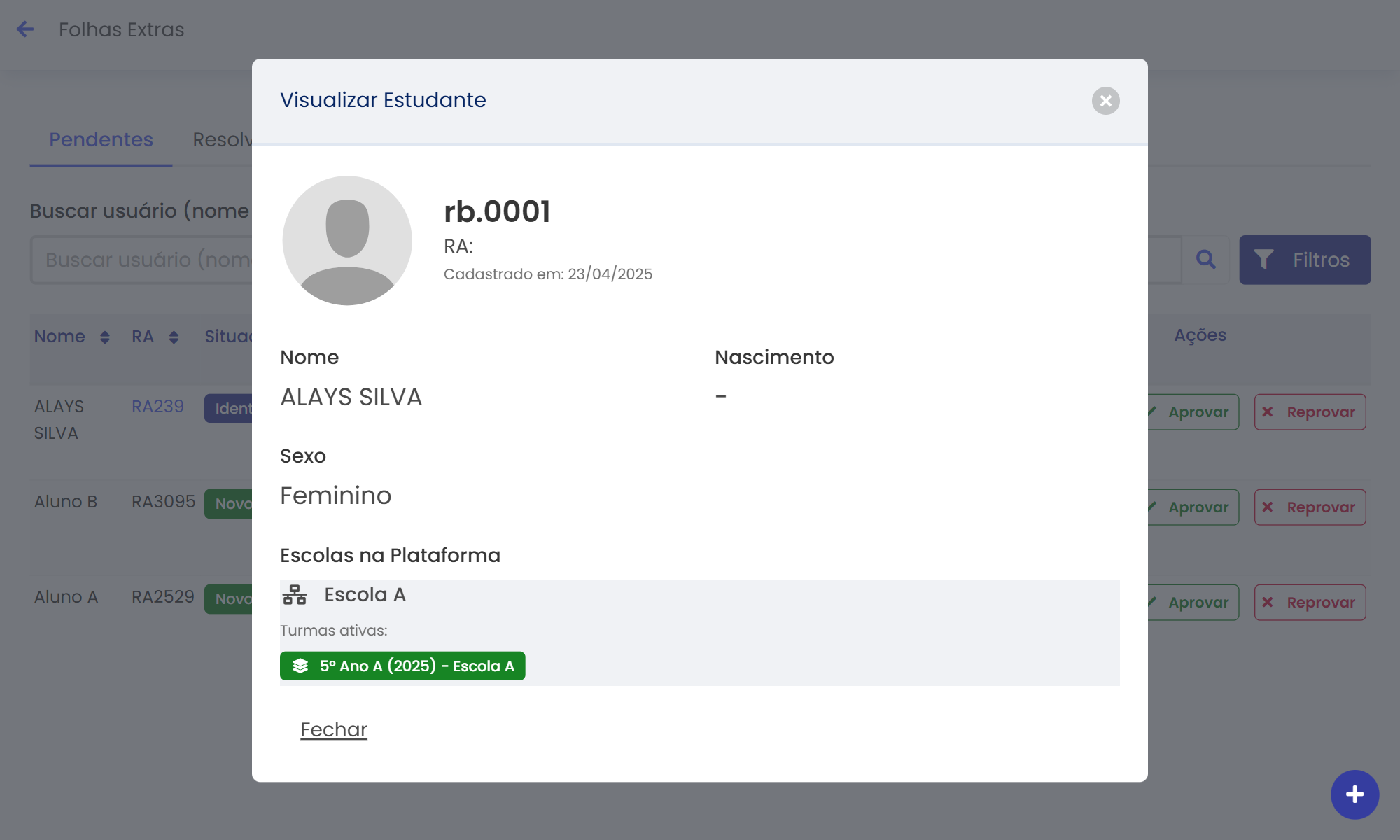 Após confirmar, a escola selecionada será listada abaixo do usuário.