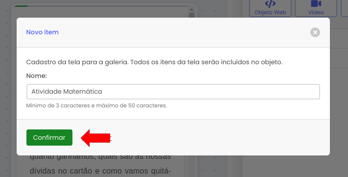 - Após clicar na opção, informe um nome para identificação posterior e escolha a opção Confirmar.