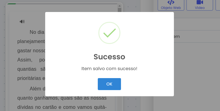 Pronto. O item foi adicionado à tela da atividade. O usuário poderá editar ou excluir o item, caso necessário.