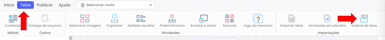 No menu de abas do software, escolha a opção Telas e depois Galeria de Telas.