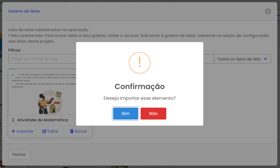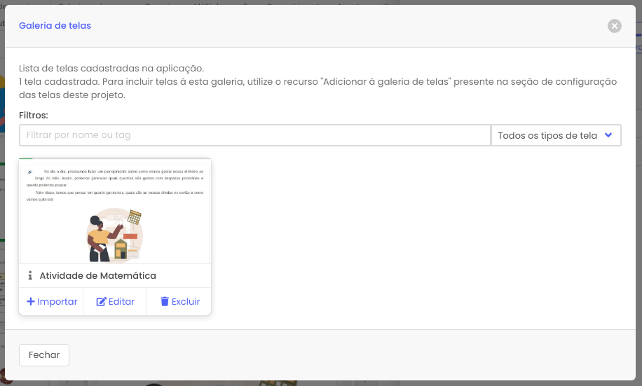 - A tela já estará registrada. Para conferir, acesse o recurso Galeria de Telas demonstrado a seguir.