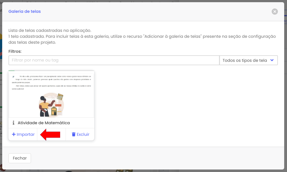 Vamos realizar a importação. Escolha a tela desejada e depois a opção Importar correspondente.