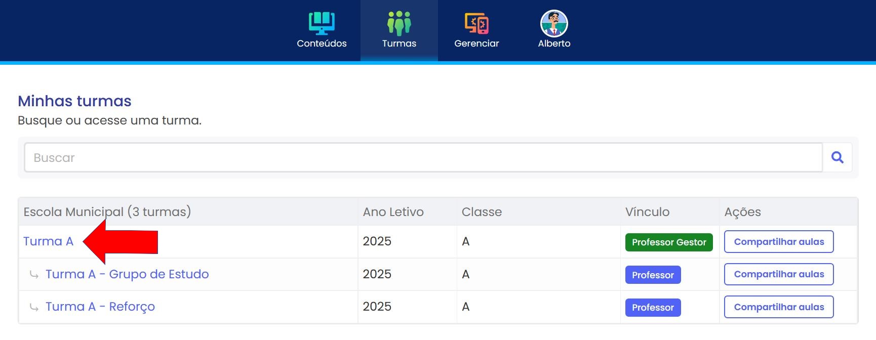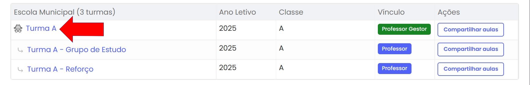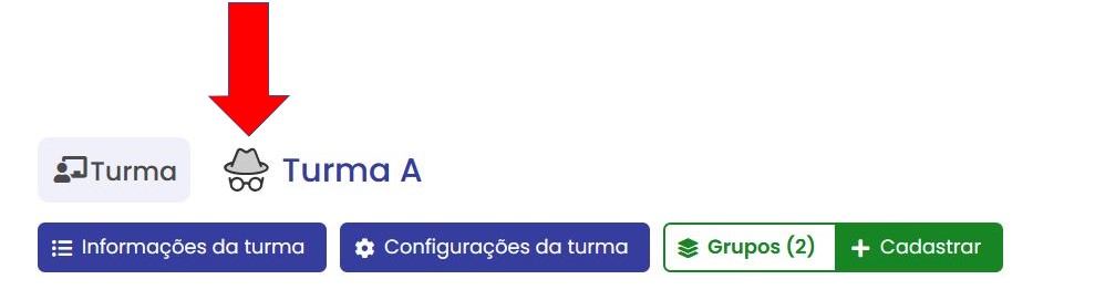 Na seção Turmas do menu principal, turmas anonimizadas exibem o ícone ao lado do nome.
