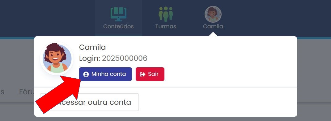 Clique no menu Usuário no canto superior direito e selecione Minha Conta.