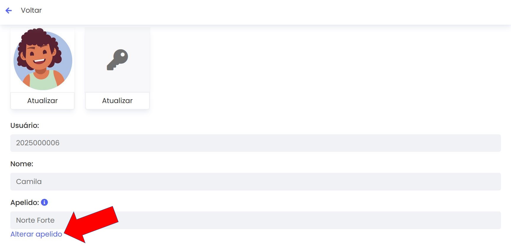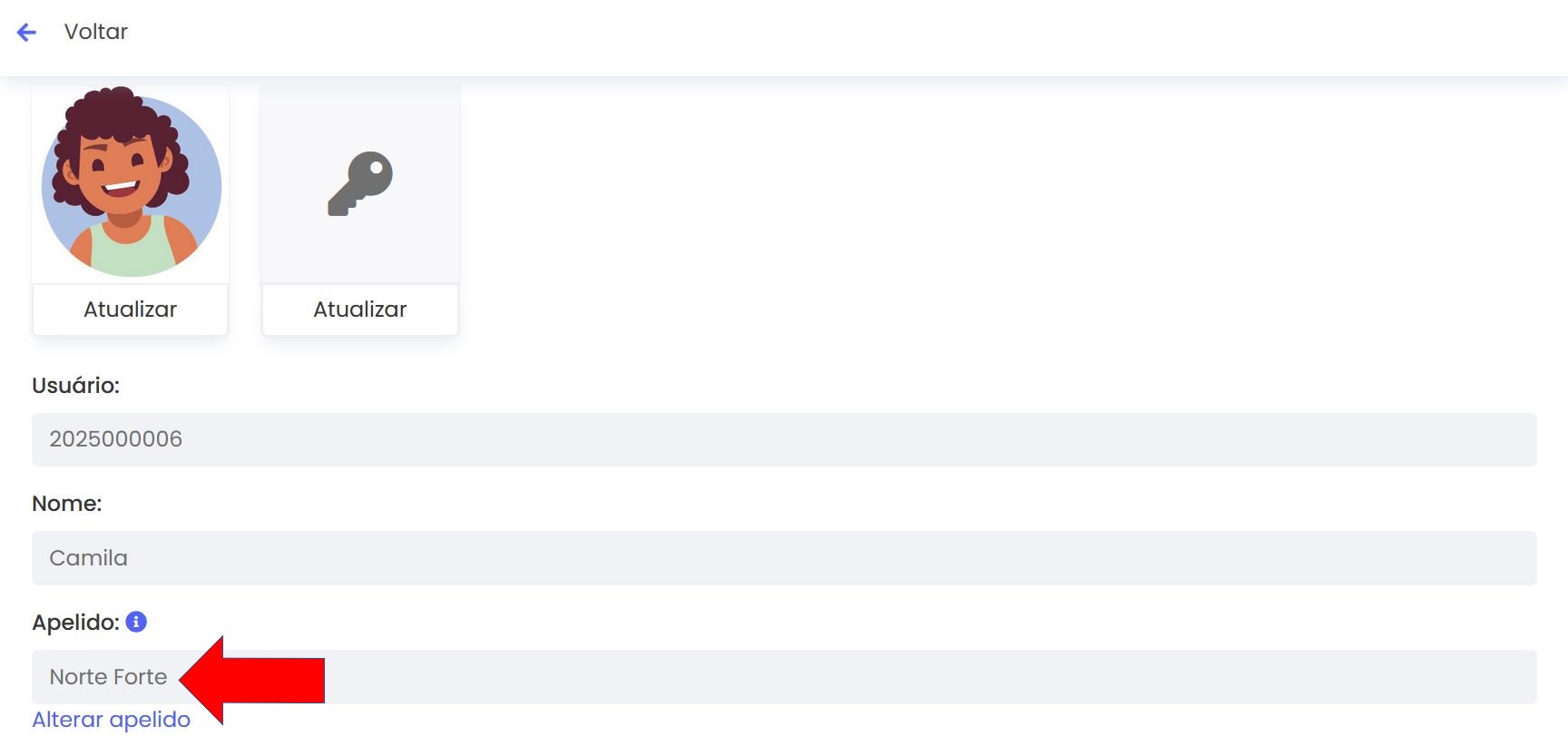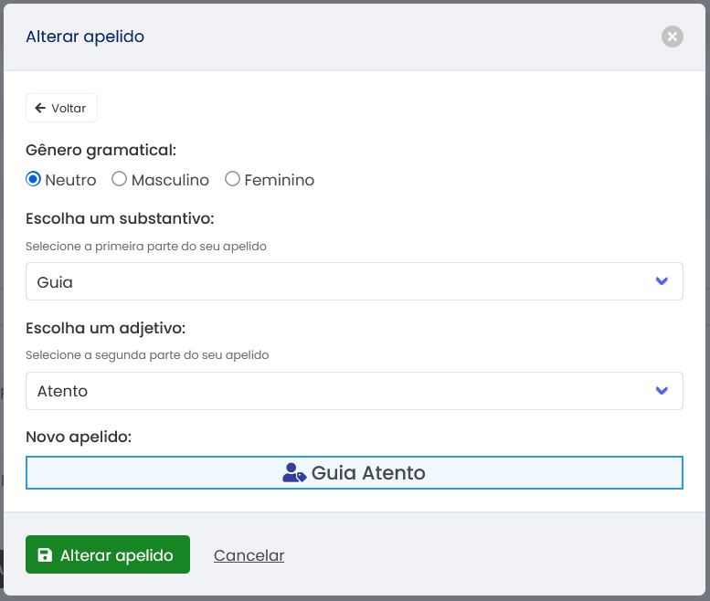 Ao optar por alterar o apelido, o usuário poderá escolher entre duas formas de criação: