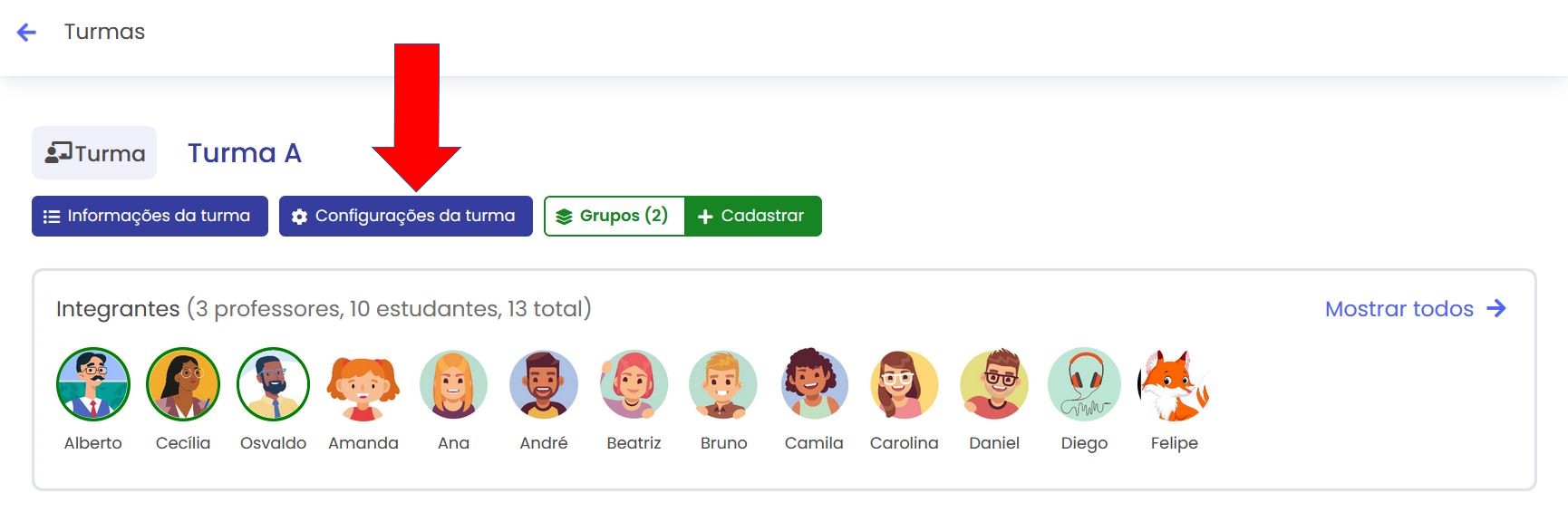 Importante: Grupos criados dentro de uma turma herdam automaticamente as configurações de anonimização da turma.