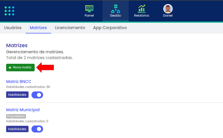 As matrizes podem ser criadas no painel do gestor de rede, por usuários com permissão de gestor de uma rede de ensino.
