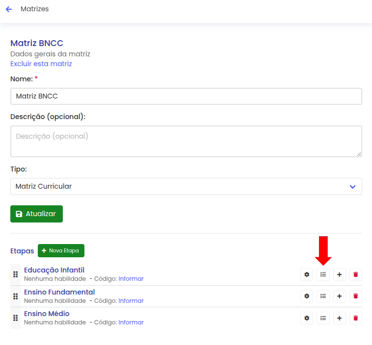 Desde que a matriz não esteja sendo utilizada em nenhuma aula, ela pode ser excluída por meio do link: Excluir esta matriz.